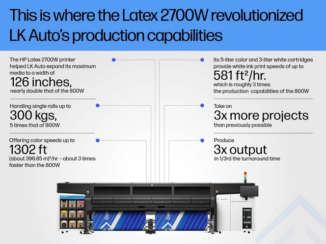 LK Auto marked the switch from traditional screen printing to digital printing with the Latex 800W which revolutionized their production capabilities entirely.